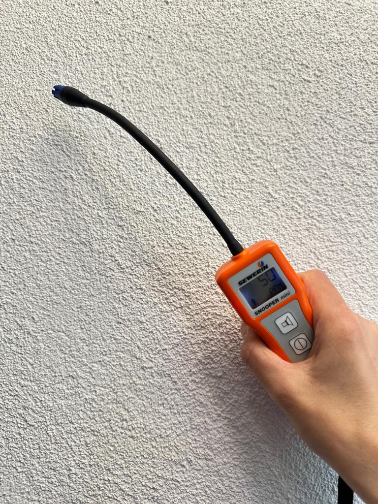 Schritt1: Feuchtemessungen an Dämmschichten und Hohlräumen sowie die flächenmäßige Eingrenzung des Schadenumfangs inklusive Erstellen eines Messprotokolls.